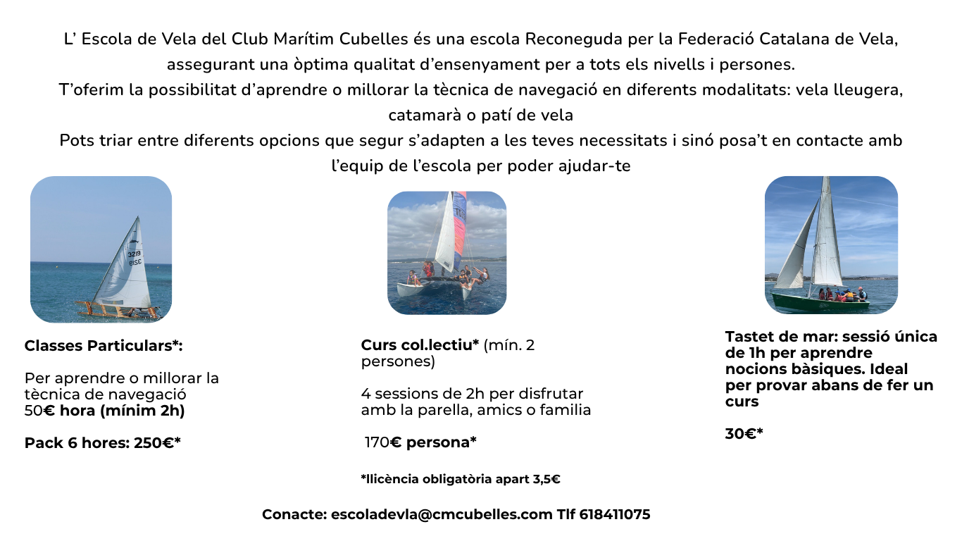 Contacte: escoladevela@cmccubelles.com / telf/whatsapp: 618411075