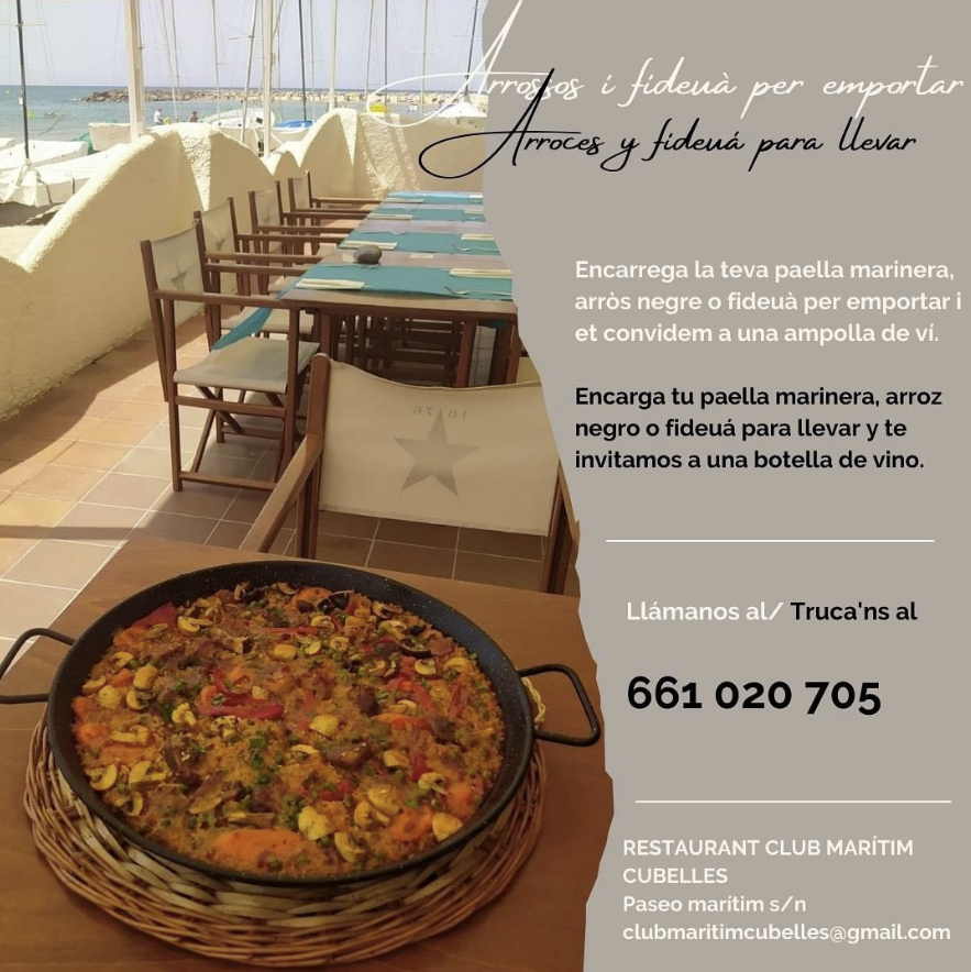 Gaudeix de l’esport de la vela maridat amb un bon dinar al restaurant Club Marítim Cubelles. Fes les teves reserves trucant al teléfon 661 02 07 05 o be pots enviar-los un missatge de Whatsapp